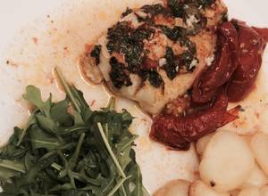 Abadejo Con Pure De Calabacines Asados Y Emulsion De Hierbas Con Ajos El Gourmet